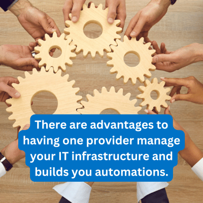 When one provider manages your IT infrastructure and builds your automations, you get three distinct advantages.